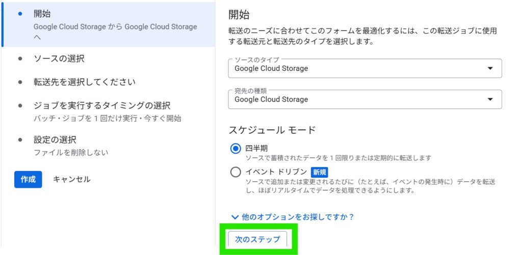・例えば、Google Cloud StorageのバケットAからバケットBに定期的に自動転送