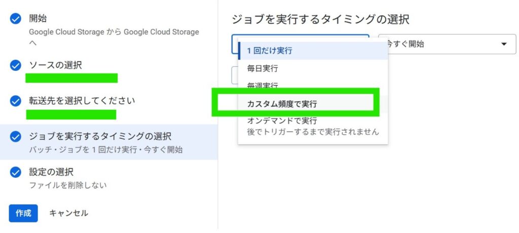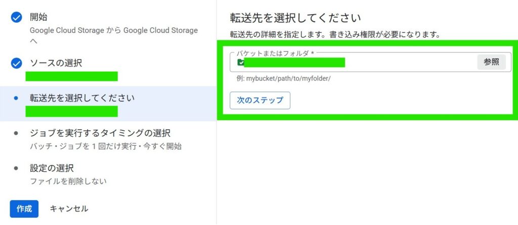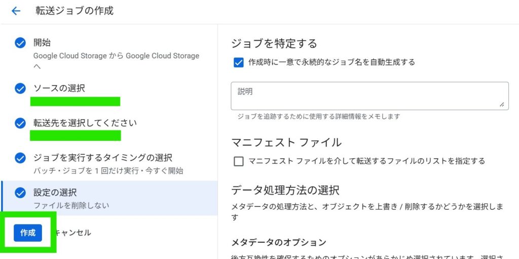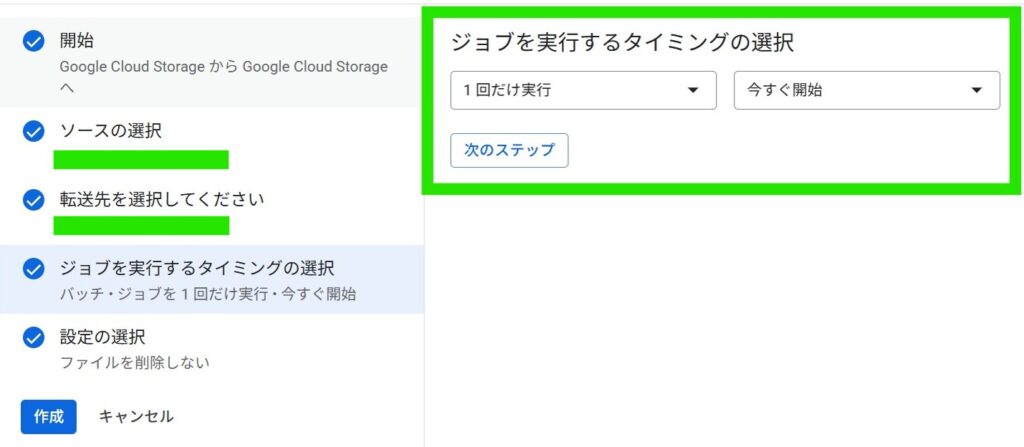転送ジョブを作成します