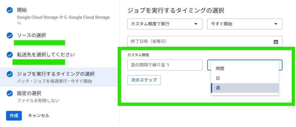 ジョブの実行タイミングを指定し次へ進みます(本日のテーマです)